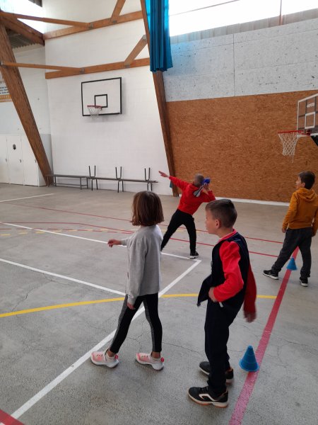Tous les vendredis, on fait de l’athlétisme avec Florian. On apprend à faire des courses-relais avec un témoin.